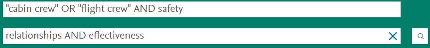 | Concept 1 | "cabin crew" OR "flight crew" OR "aeroplane staff" |